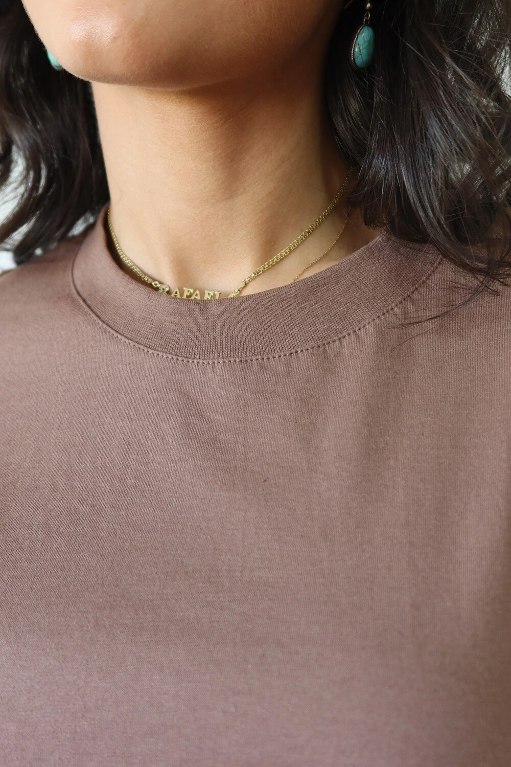 A T Shirt Essential Marrom é o básico que nunca sai de moda. Feita em 100% algodão, tem um caimento impecável e garante conforto durante todo o dia. Uma peça essencial para compor looks versáteis, seja no estilo casual ou em combinações mais sofisticadas.